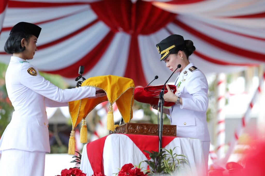 Wakil Wali Kota Batam, Li Claudia Chandra, menyampaikan apresiasinya kepada seluruh pihak yang telah berperan dalam pelaksanaan upacara.