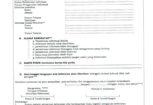 Daftar dokumen pemberitahuan perpanjangan waktu kepada pemohon informasi