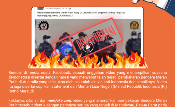 Hallo #sobatkom Sebuah unggahan video beredar di media sosial facebook dengan menampilkan suasana demonstrasi disertai narasi yang menyebut telah terjadi pembakaran Bendera Merah Putih di Australia yang dilakukan oleh sejumlah […]