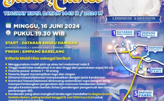 Jangan lewatkan kemeriahan Lomba Pawai Takbir Idul Adha 2024 di Kota Batam! Yuk, kita ramaikan dan bersama-sama mengumandangkan takbir.