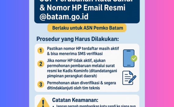 𝐒𝐎𝐏 𝐏𝐞𝐫𝐮𝐛𝐚𝐡𝐚𝐧 𝐊𝐚𝐭𝐚 𝐒𝐚𝐧𝐝𝐢 𝐝𝐚𝐧 𝐍𝐨𝐦𝐨𝐫 𝐇𝐏 𝐀𝐤𝐮𝐧 𝐄𝐦𝐚𝐢𝐥 𝐑𝐞𝐬𝐦𝐢 @𝐛𝐚𝐭𝐚𝐦.𝐠𝐨.𝐢𝐝 Demi menjaga keamanan dan kerahasiaan informasi pada akun email resmi @batam.go.id, kami menghimbau seluruh Aparatur Sipil Negara (ASN) Pemerintah […]
