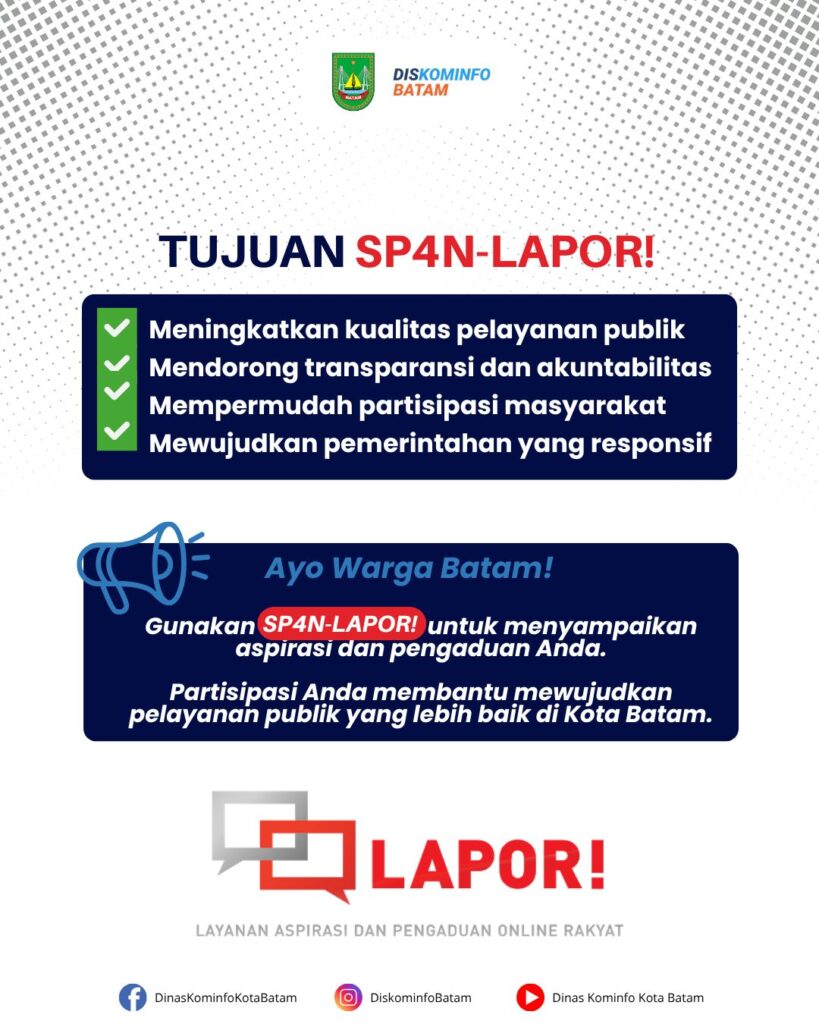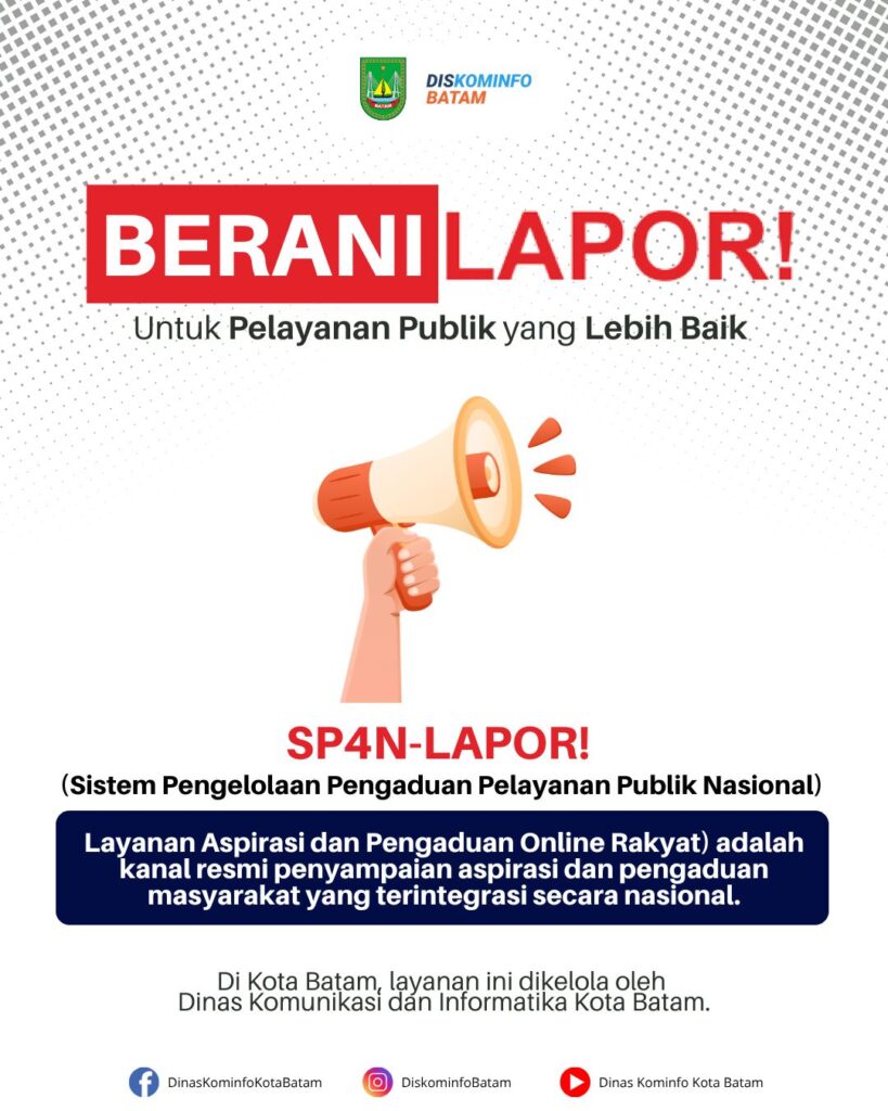 PemkoBatam #Diskominfobatam #SP4N-LAPOR! #BeraniLapor #Batam #LayananPengaduan