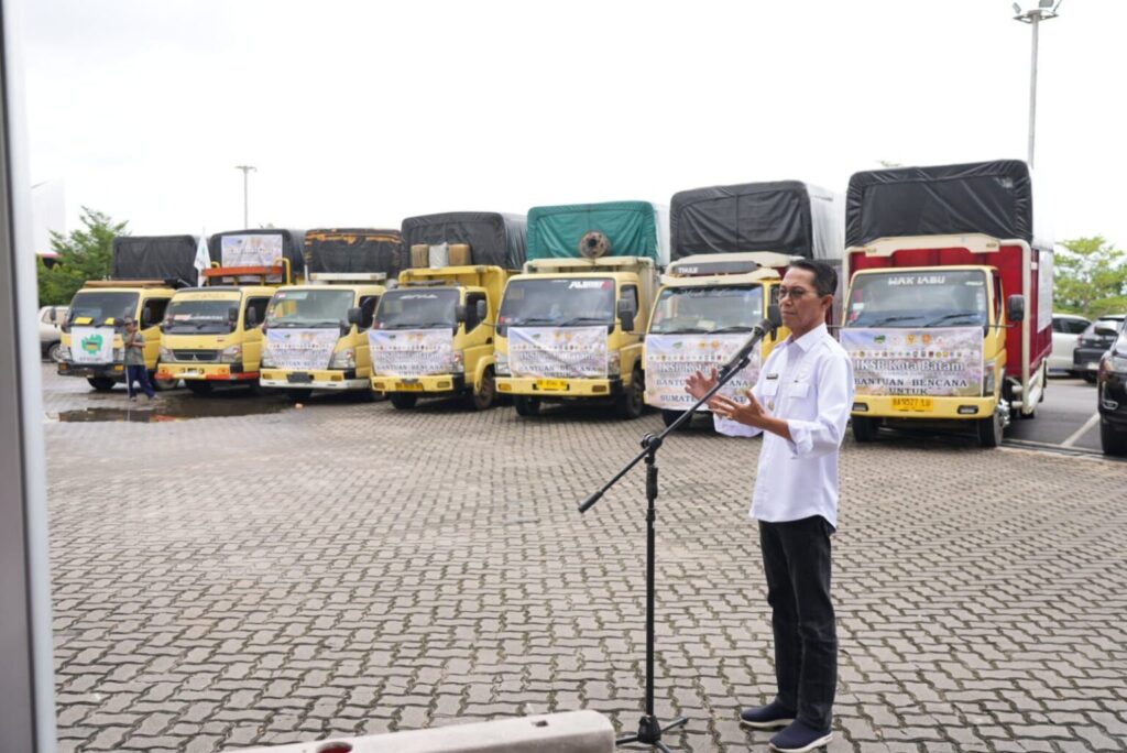 Diskominfo Batam – Wali Kota Batam, Amsakar Achmad, secara resmi melepas keberangkatan tujuh truk bantuan logistik berupa sembako bagi masyarakat terdampak bencana di Sumatera Barat. Pelepasan bantuan tersebut berlangsung di halaman Gedung Badan Pengusahaan (BP) Batam, Rabu (17/12/2025).