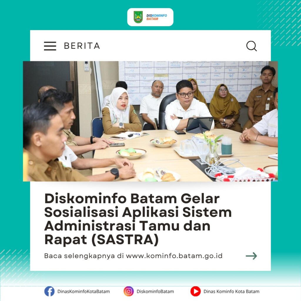 Dinas Komunikasi dan Informatika (Diskominfo) Kota Batam menggelar kegiatan Sosialisasi Internal bagi seluruh Aparatur Sipil Negara (ASN) terkait penggunaan Aplikasi Sistem Administrasi Tamu dan Rapat (SASTRA). Acara ini berlangsung pada Selasa, 18 November 2025, bertempat di Ruang Rapat Diskominfo Lantai VII, Kantor Wali Kota Batam.