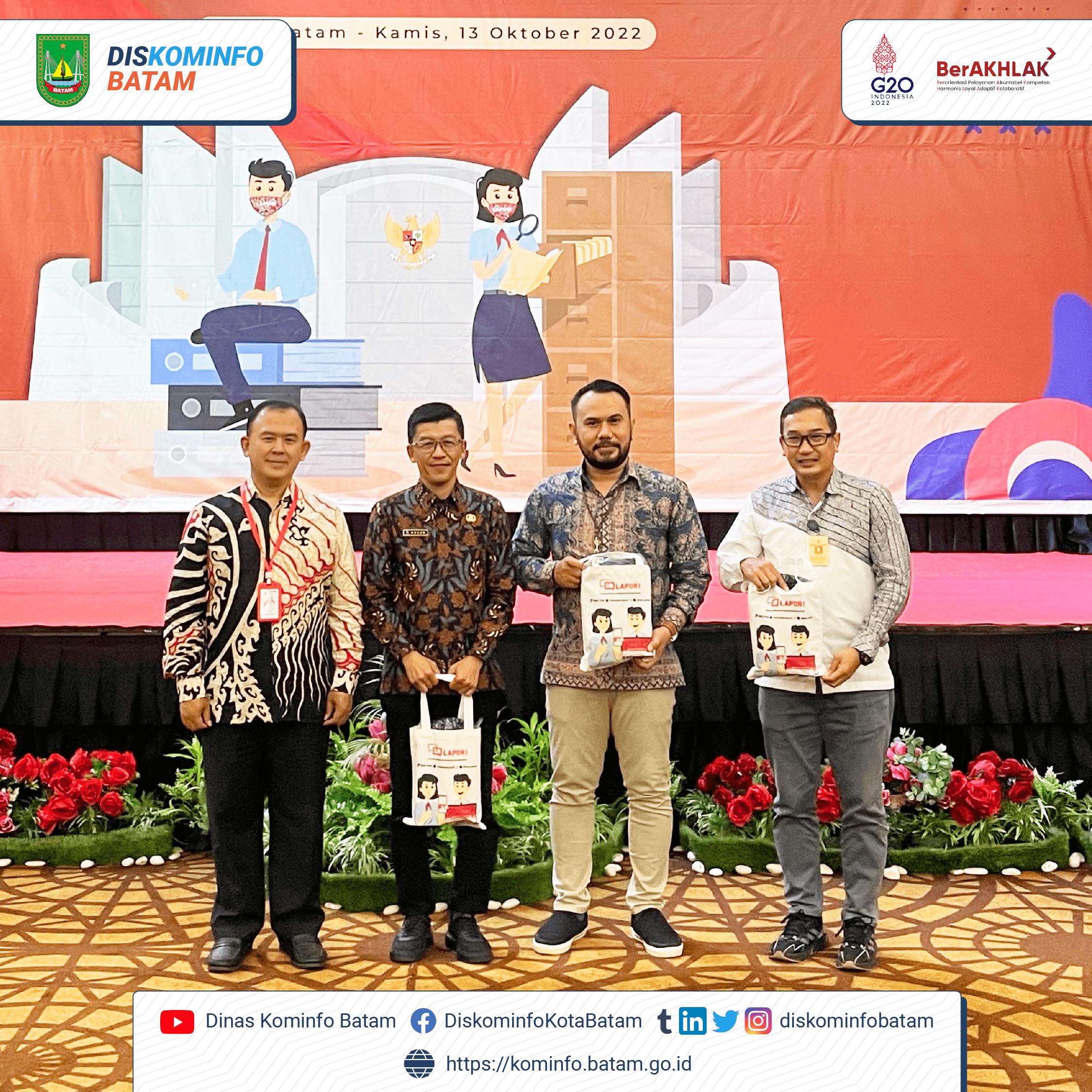 Acara yang dibuka secara virtual oleh Deputi Bidang Pelayanan Publik tersebut dihadiri oleh perwakilan dari 77 Provinsi dan Kab/kota. Turut hadir sebagai narasumber pada acara ini Kepala Dinas Kominfo Provinsi Kepri dan Kepala Subkoordinator Sistem Pengelolaan Pengaduan Pelayanan Publik Nasional dari KemenPANRB .
