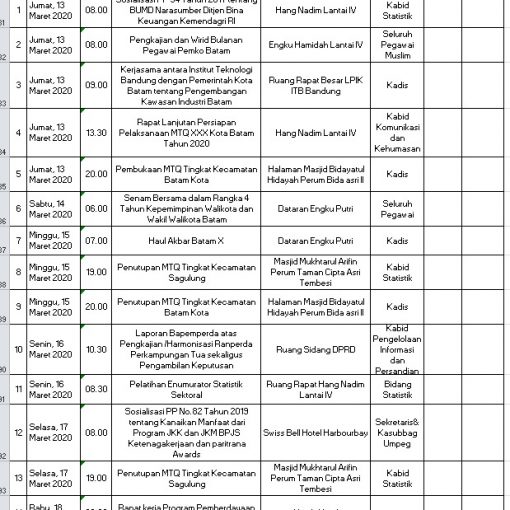Telah Terbit 11 Februari 2020 Jadwal Tentatif Dinas Kominfo Kota Batam, Selasa 11 Februari 2020 Bagikan: