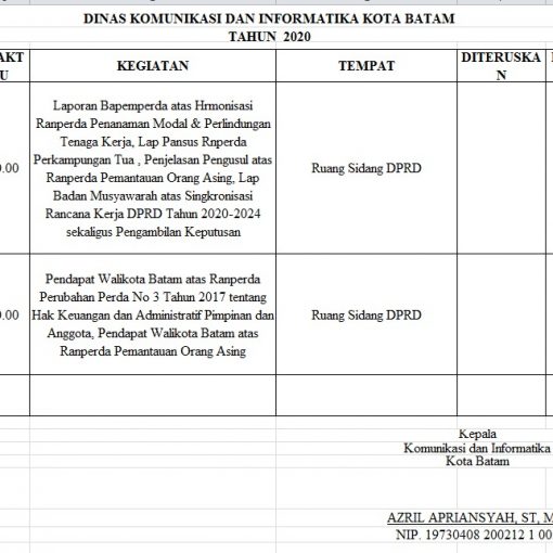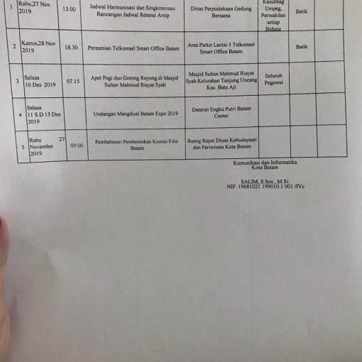 Telah Terbit 27 November 2019 Jadwal Tentatif Dinas Kominfo Kota Batam, Rabu 27 November 2019 Bagikan: