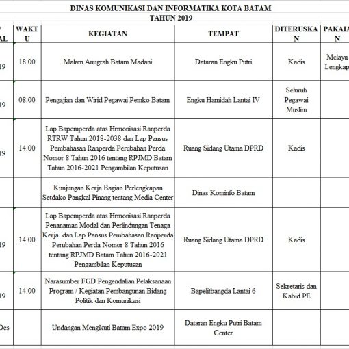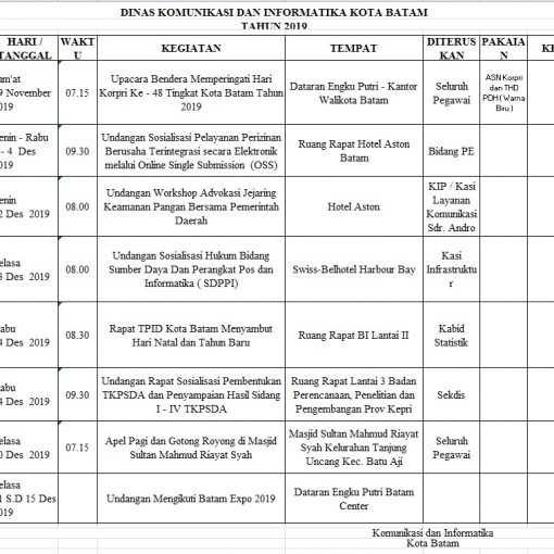 Telah Terbit 9 Desember 2019 Jadwal Tentatif Dinas Kominfo Kota Batam, Selasa 10 Desember 2019 Bagikan: