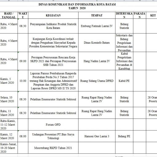 Jadwal Tentatif Jadwal Tentatif Dinas Kominfo Kota Batam, Jum’at 24 Januari 2020 Telah Terbit 24 Januari 2020 Post Views: 1 Bagikan: