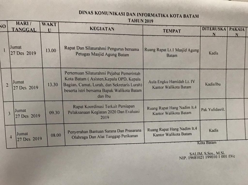 Telah Terbit 27 Januari 2020 Jadwal Tentatif Dinas Kominfo Kota Batam, Selasa 28 Januari 2020 Bagikan: