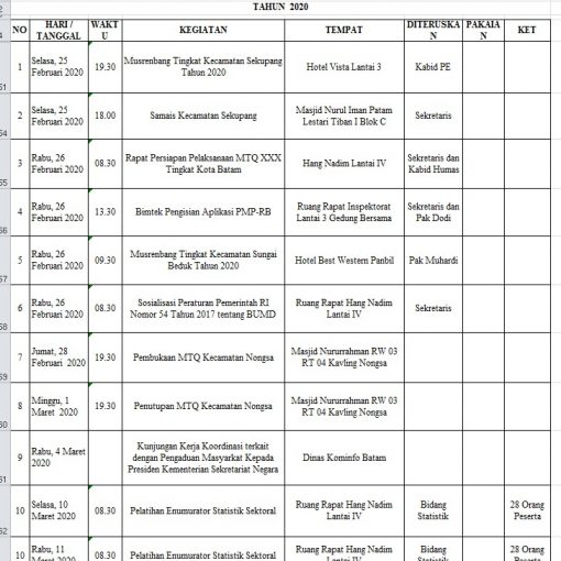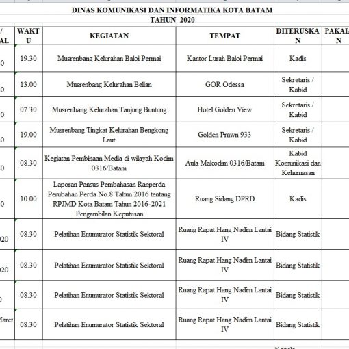 Telah Terbit 26 Februari 2020 Jadwal Tentatif Dinas Kominfo Kota Batam, Rabu 26 Februari 2020 Bagikan: