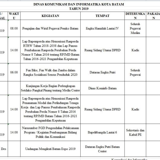 Telah Terbit 11 Desember 2019 Jadwal Tentatif Dinas Kominfo Kota Batam, Rabu 10 November 2019 Bagikan: