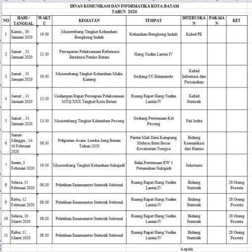 Telah Terbit 10 Februari 2020 Jadwal Tentatif Dinas Kominfo Kota Batam,Senin 10 Februari 2020 Bagikan: