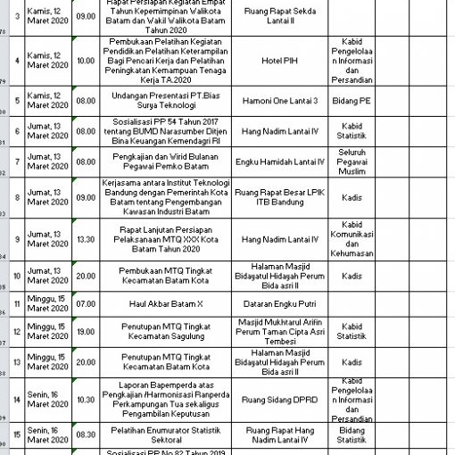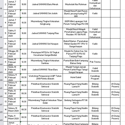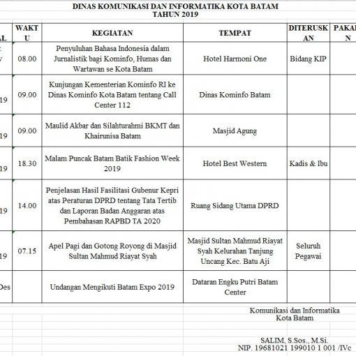 Telah Terbit 10 Februari 2020 Jadwal Tentatif Dinas Kominfo Kota Batam,Senin 10 Februari 2020 Bagikan: