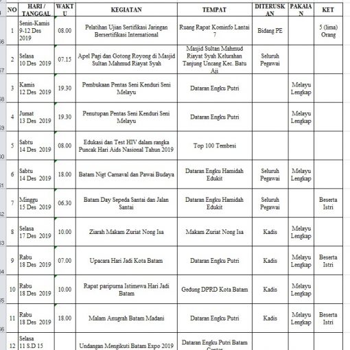 Telah Terbit 9 Desember 2019 Jadwal Tentatif Dinas Kominfo Kota Batam, Selasa 10 Desember 2019 Bagikan: