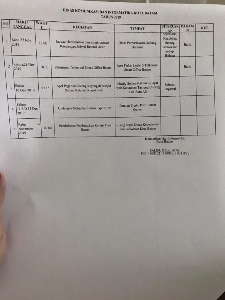 Telah Terbit 19 November 2019 Jadwal Tentatif Dinas Kominfo Kota Batam, Rabu 20 November 2019 Bagikan: