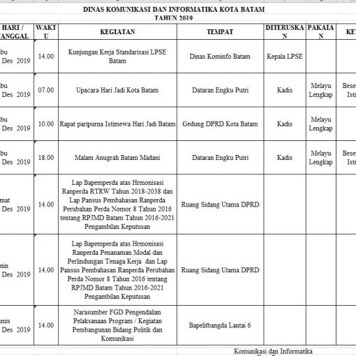 Telah Terbit 20 Desember 2019 Jadwal Tentatif Dinas Kominfo Kota Batam, Jumat 20 Desember 2019 Bagikan: