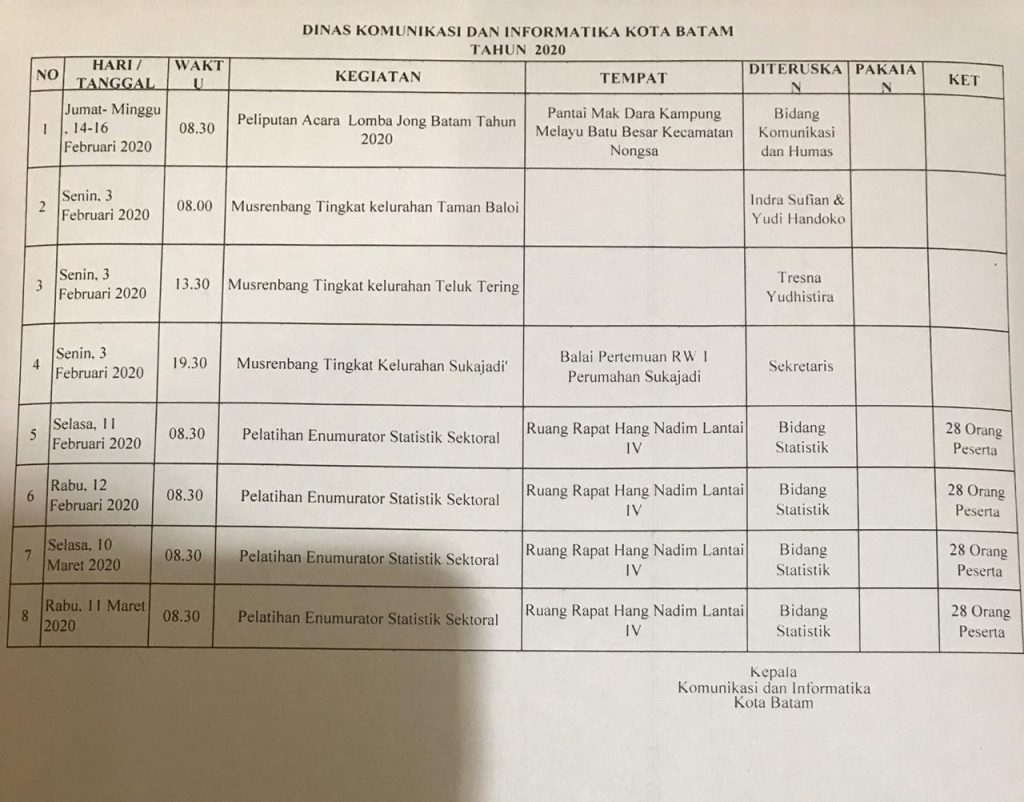 Telah Terbit 2 Desember 2019 Jadwal Tentatif Dinas Kominfo Kota Batam, Senin 02 Desember 2019 Bagikan:
