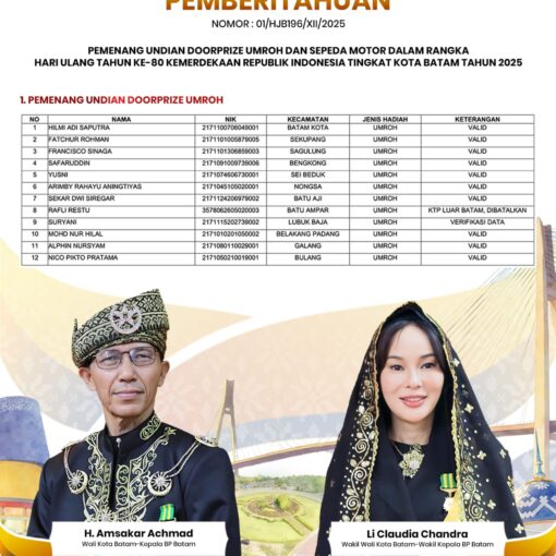 ๐๐ข๐ฌ๐ค๐จ๐ฆ๐ข๐ง๐๐จ ๐๐๐ญ๐๐ฆ โ Wali Kota Batam, Amsakar Achmad, menyampaikan antusiasmenya setelah mengikuti Retreat Kepala Daerah yang langsung ditutup oleh Presiden Republik Indonesia, […]