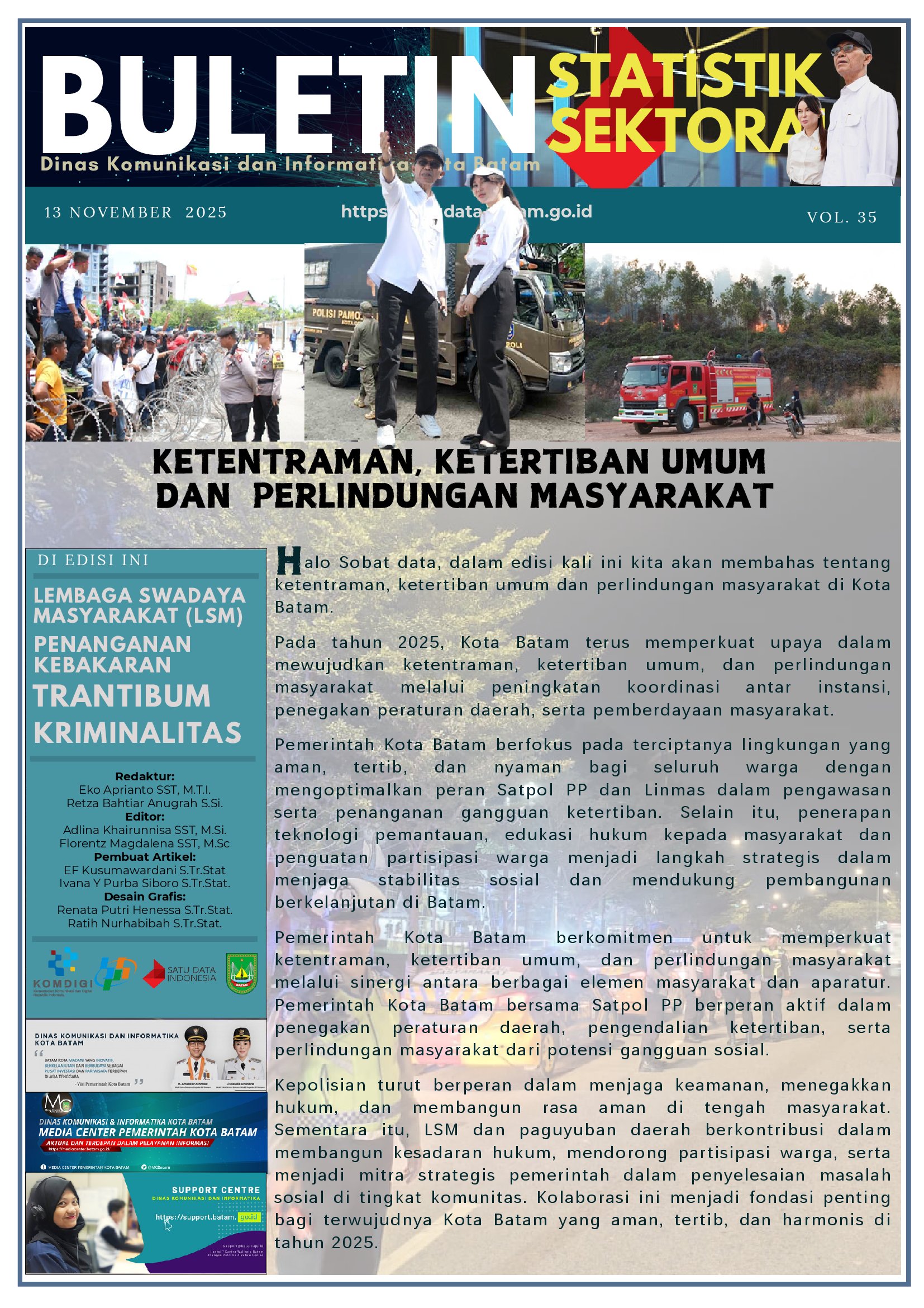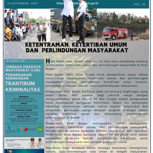 Publikasi Statistik Sektoral Pemerintah Kota Batam Tahun 2022 adalah publikasi resmi yang diterbitkan oleh Dinas Komunikasi dan Informatika Kota Batam. Publikasi ini menampilkan kompilasi data statistik sektoral yang berkaitan dengan penyelenggaraan Pemerintahan Daerah sesuai dengan kewenangannya. Data yang dikumpulkan bersumber dari Organisasi Perangkat Daerah di Lingkungan Pemerintah Kota Batam.