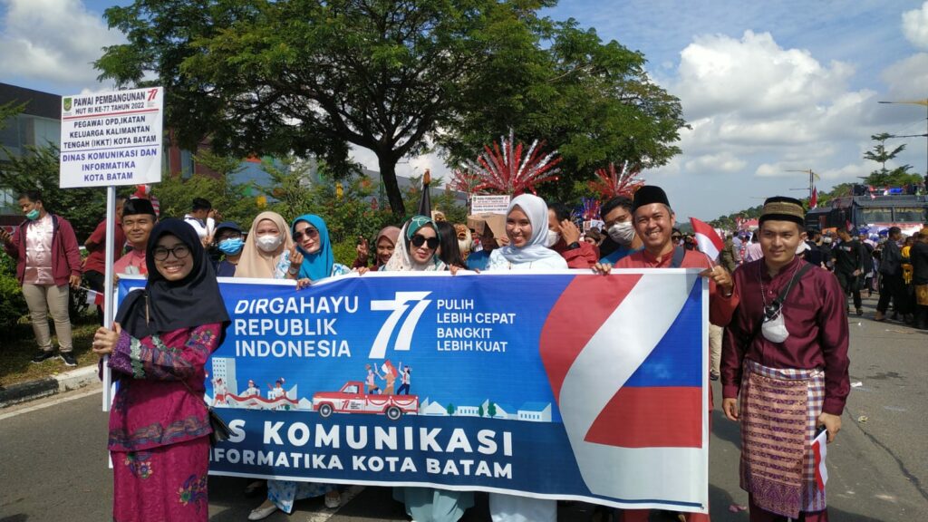 Dinas Komunikasi dan Informatika menghadiri Pawai Pembangunan Mobil Hias dan Pawai Budaya dalam rangka HUT RI Ke-77 tingkat Kota Batam Tahun 2022 yang dilaksanakan di Dataran Engku Hamidah Batam Center pada Hari Minggu Tanggal 14 Agustus 2022