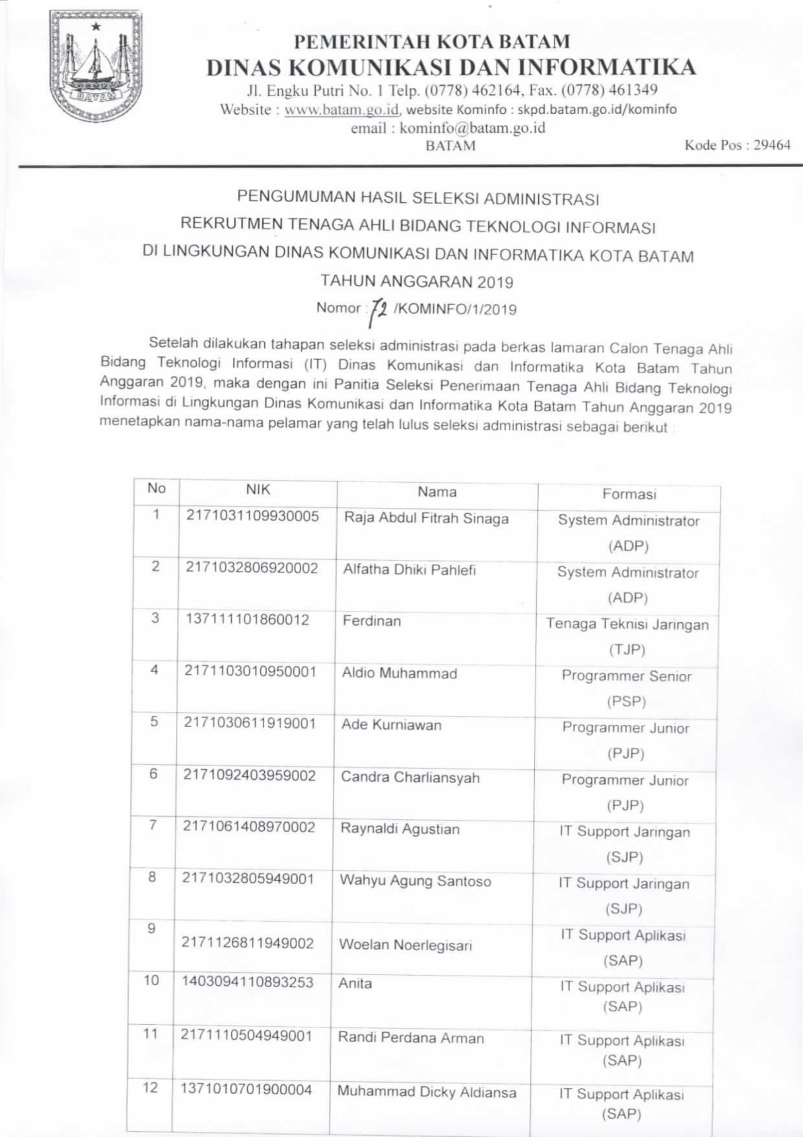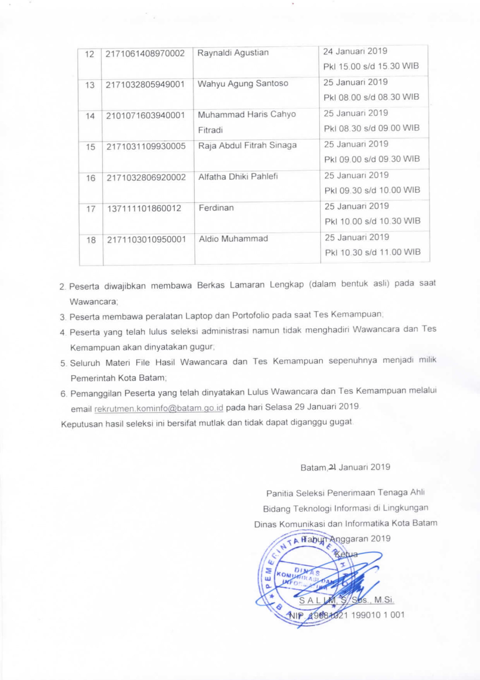 Pengumuman Seleksi Tenaga Ahli Tahun 2019 Gelombang-2 PENGUMUMAN TENTANGREKRUTMEN TENAGA AHLI BIDANG TEKNOLOGI INFORMASI DI LINGKUNGAN DINAS KOMUNIKASI DAN INFORMATIKA KOTA BATAM […]