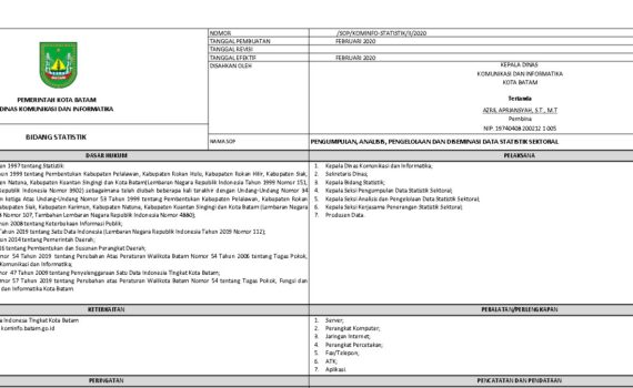 SOP Pengumpulan, Analisis, Pengelolaan dan Diseminasi Data Statistik Sektoral