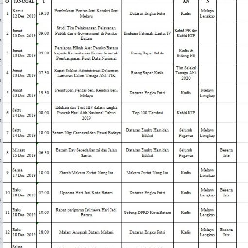 Telah Terbit 11 Desember 2019 Jadwal Tentatif Dinas Kominfo Kota Batam, Rabu 10 November 2019 Bagikan: