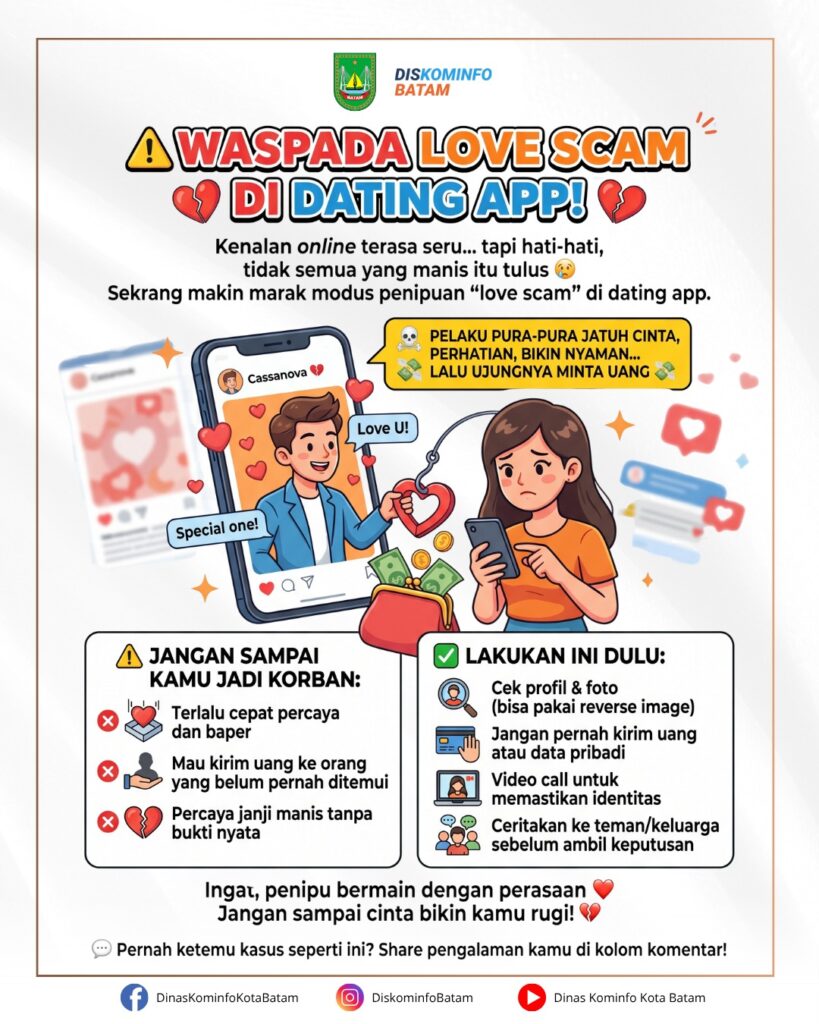 #PemkoBatam#DiskominfoBatam#Batam#LoveScam#DatingAppBahaya#WaspadaPenipuan#KeamananDigital#LiterasiDigital
