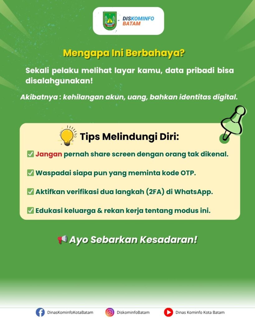 #PemkoBatam #DiskominfoBatam #Batam #WaspadaPenipuanOnline #WhatsApp #ShareScreen